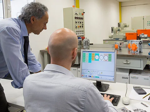 El avanzado laboratorio de pruebas Transtecno está equipado con bancadas de pruebas certificadas preparadas para leer y detectar los datos fundamentales para el óptimo desarrollo y desempeño de los moto reductores.